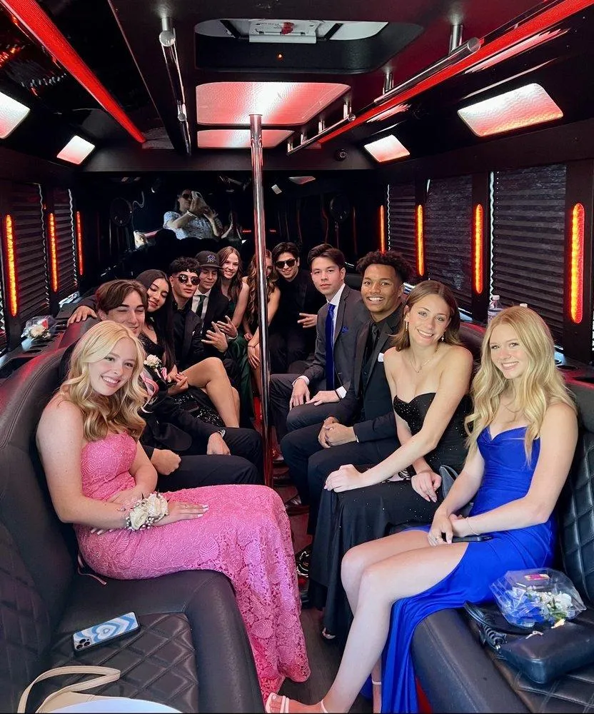 Elevate your prom experience with our sleek and spacious party bus! Impress your friends and arrive in style to the event of the year. Perfect for dancing, mingling, and capturing unforgettable memories. Don't settle for ordinary transportation, make your prom night extraordinary!